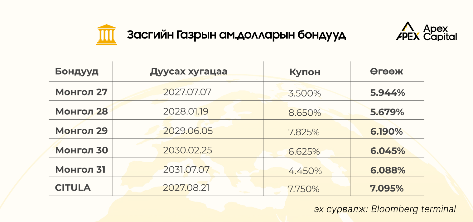 Монгол ам.долларын бондуудын ханшийн мэдээлэл💰